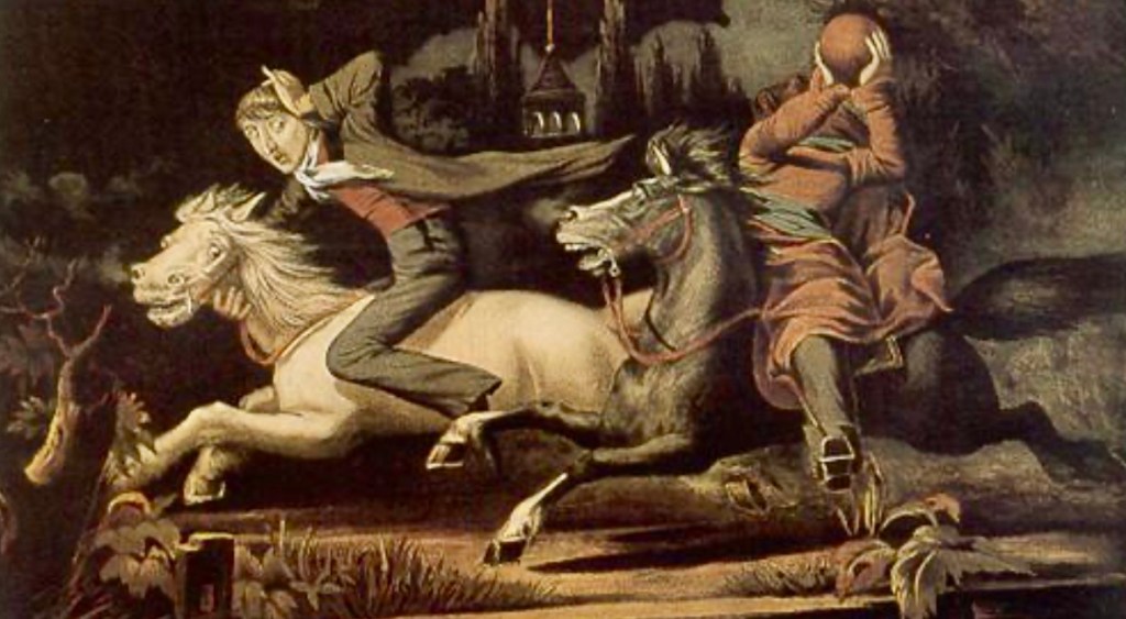 As a teenager, Washington Irving spent time in the Tarrytown/Sleepy Hollow area – rambling around the countryside, meeting locals and listening to tales steeped in old Dutch colonial traditions and ghost stories about haunts and specters that inhabited the area. One of the tales Irving learned of spoke of a Hessian soldier who had his head blown off by a cannon during the Revolutionary War. It was said the decapitated soldier haunted woods by the Pocantico River, riding headless in search of his lost head… and maybe a bit of revenge!