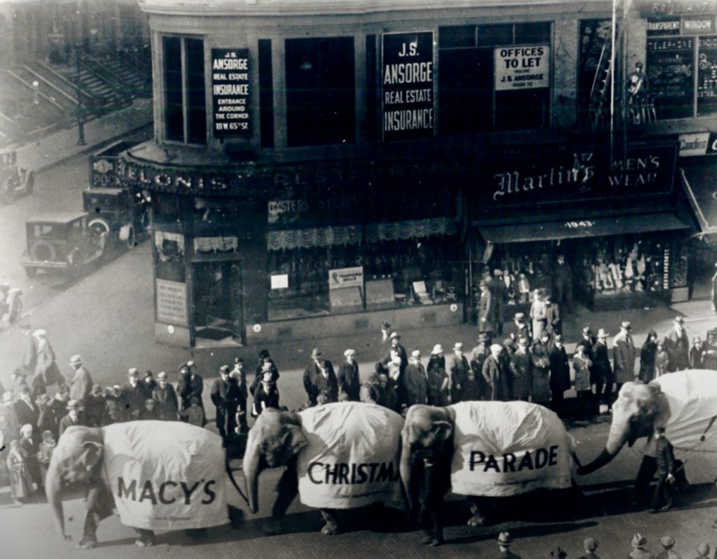 The first Macy's Thanksgiving Day Parade was held in New York City in 1924. The first parade was called the Macy's Christmas Parade and featured Mother Goose inspired parade floats and store employees dressed as clowns, cowboys and sword-wielding knights. There were also marching bands and, instead of the ginormous floating balloons we are all so familiar with...the parade featured live animals on loan from the Central Park Zoo - a menagerie of camels, elephants, bears and monkeys! The giant balloons would not replace the menagerie until 1927 - much to the relief of the zoo animals.