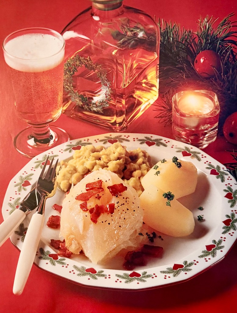 Lutefisk is a traditional Scandinavian dish prepared and served on Christmas Eve. The process takes a few weeks - starting early is a must. If you start preparing your Lutefisk on December 9th, it will be ready for Christmas Eve dinner.