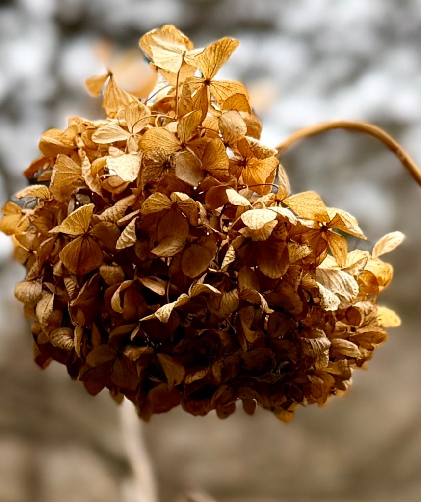 Winter is a time for rest, for planning, and storing energy. The bare trees are quietly resting and funneling energy into the buds that will break open with new leaves in spring. The dry hydrangea flowers of last summer hang on as a reminder of the soft pink blossoms that will bloom again in June, and the emerald green moss stubbornly refuses to turn shades of winter brown and beige—a welcome reminder that a season bright with color and light is slowly on its way.