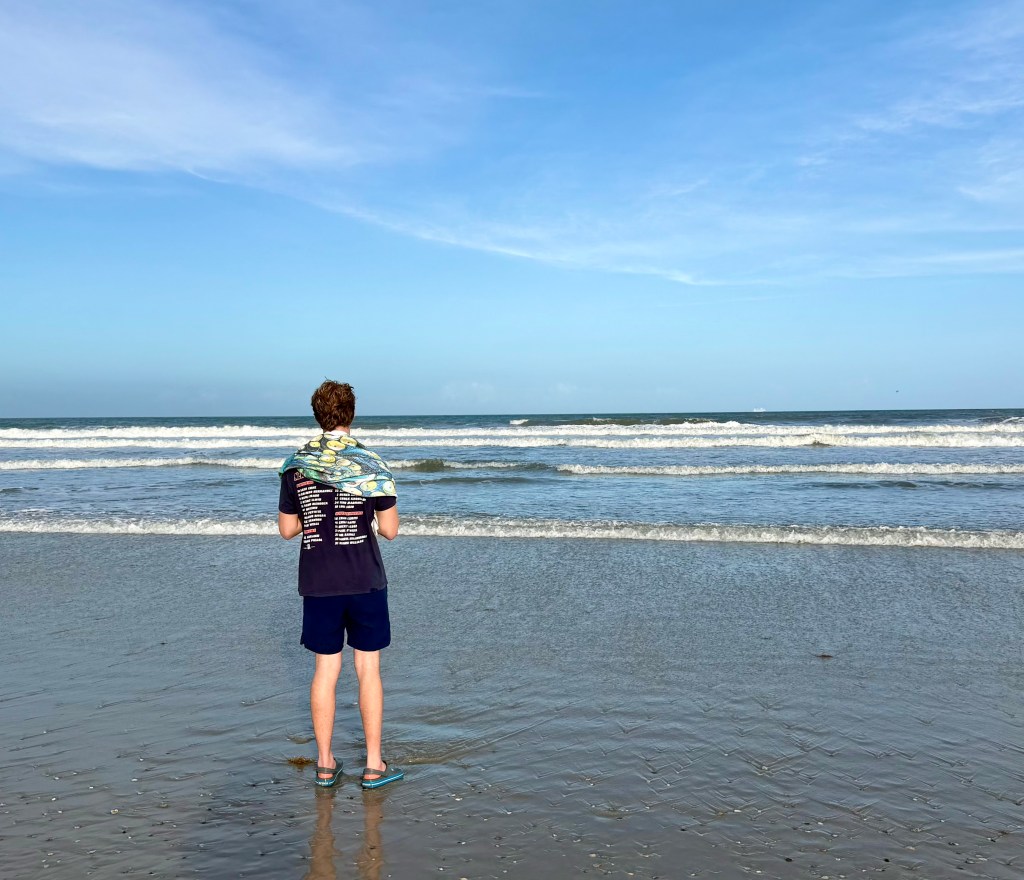 Luke and I have traded our snow boots for bare feet on a sandy beach. My Luke will graduate from high school in just a few months, and instead of having a big celebration at home, he decided he’d rather island hop with his mom on a cruise. We spent some time in Cocoa Beach, Florida the day before heading out by ship to the Virgin Islands.