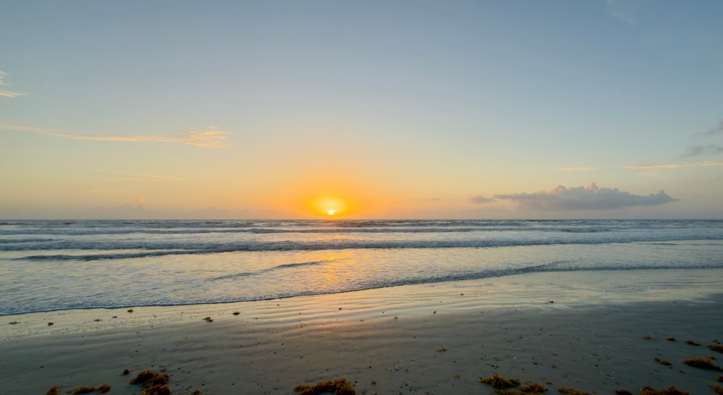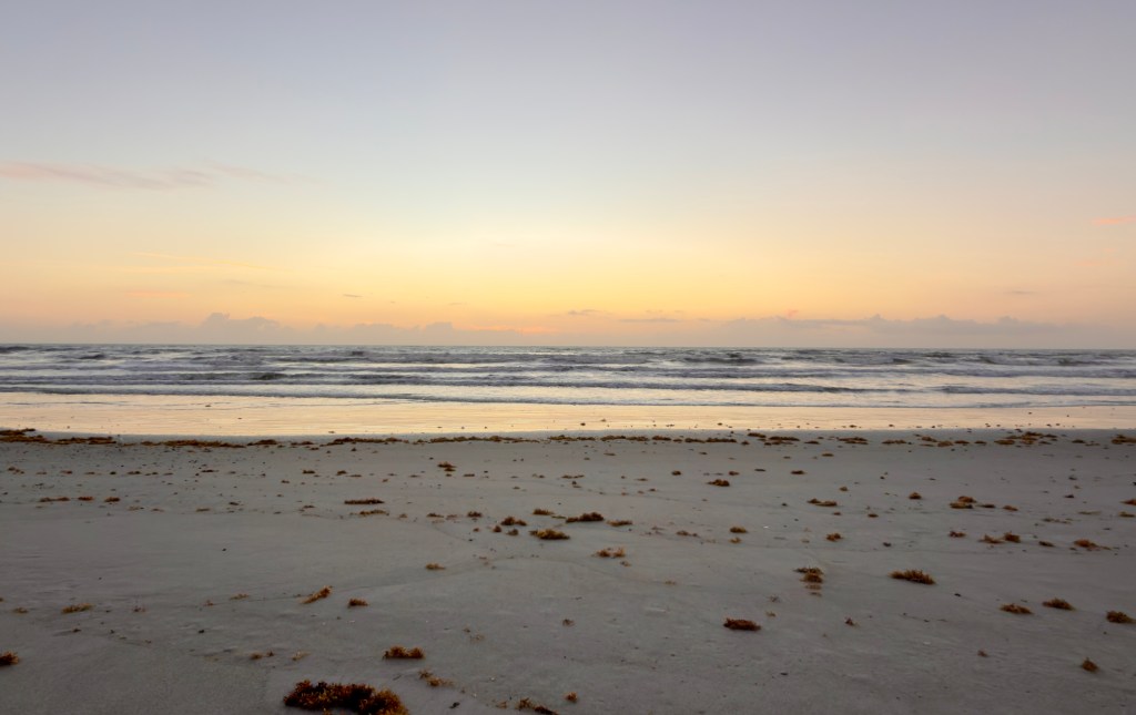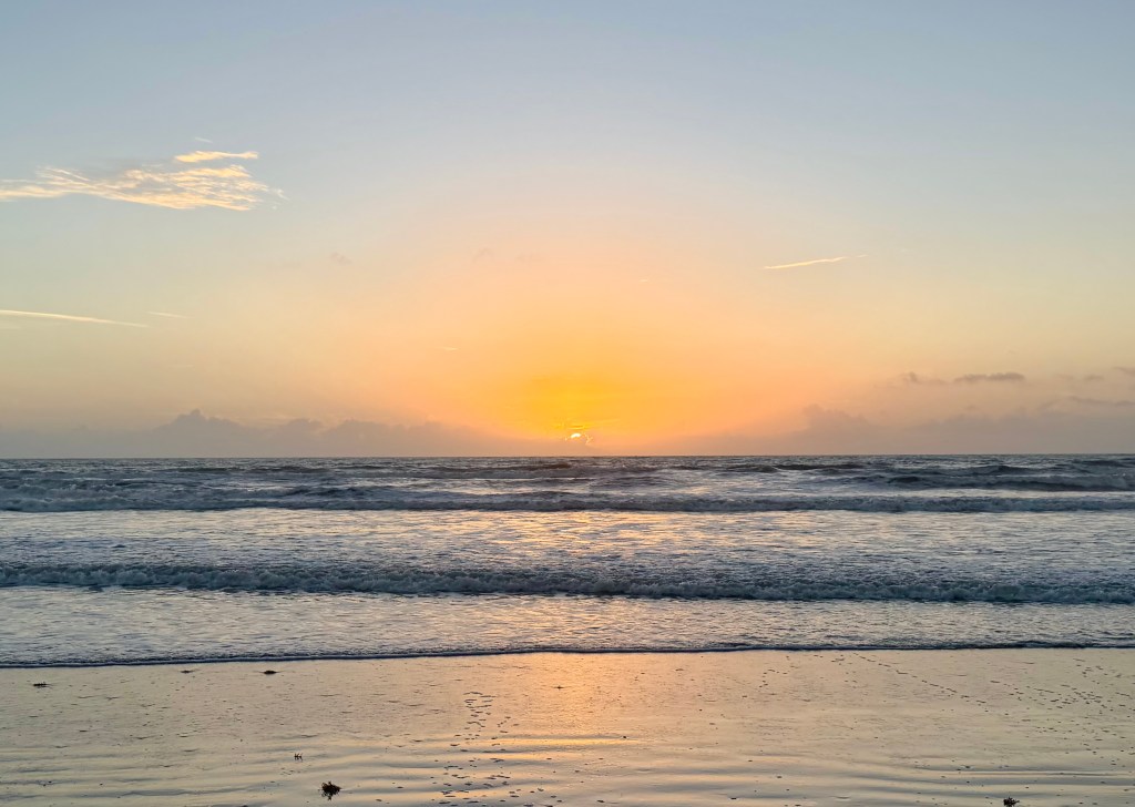 I woke before the sun and walked down to the beach just in time to watch dawn break over the water. As I walked along the damp sand in bare feet at the edge of the tide, I felt some of the tension drain away — soft morning air on my shoulders and arms, the sea breeze brushing my skin, the first rays of sunlight warm on my face, and the briny scent of the ocean filling my lungs.