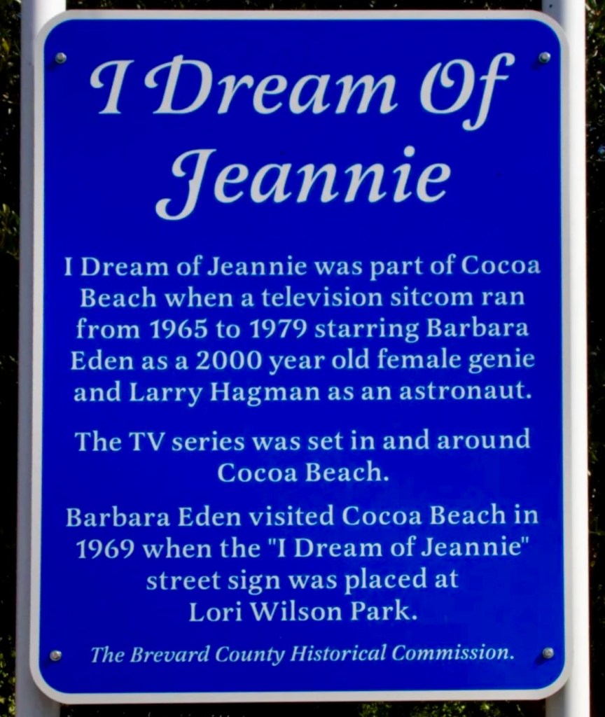 For a bit of nostalgia, Cocoa Beach was also the setting for I Dream of Jeannie — a favorite sitcom I remember watching as a kid in reruns on weekday mornings during snow days, school closings, and holidays. The show was set in the 1960s at the height of the space era, with a group of NASA astronauts and, of course, a beautiful and mischievous (though well-intentioned) genie who was always causing a bit of trouble.