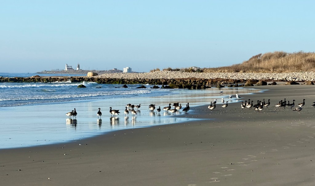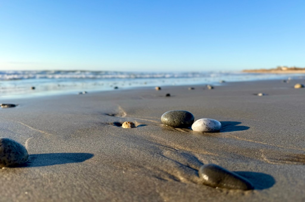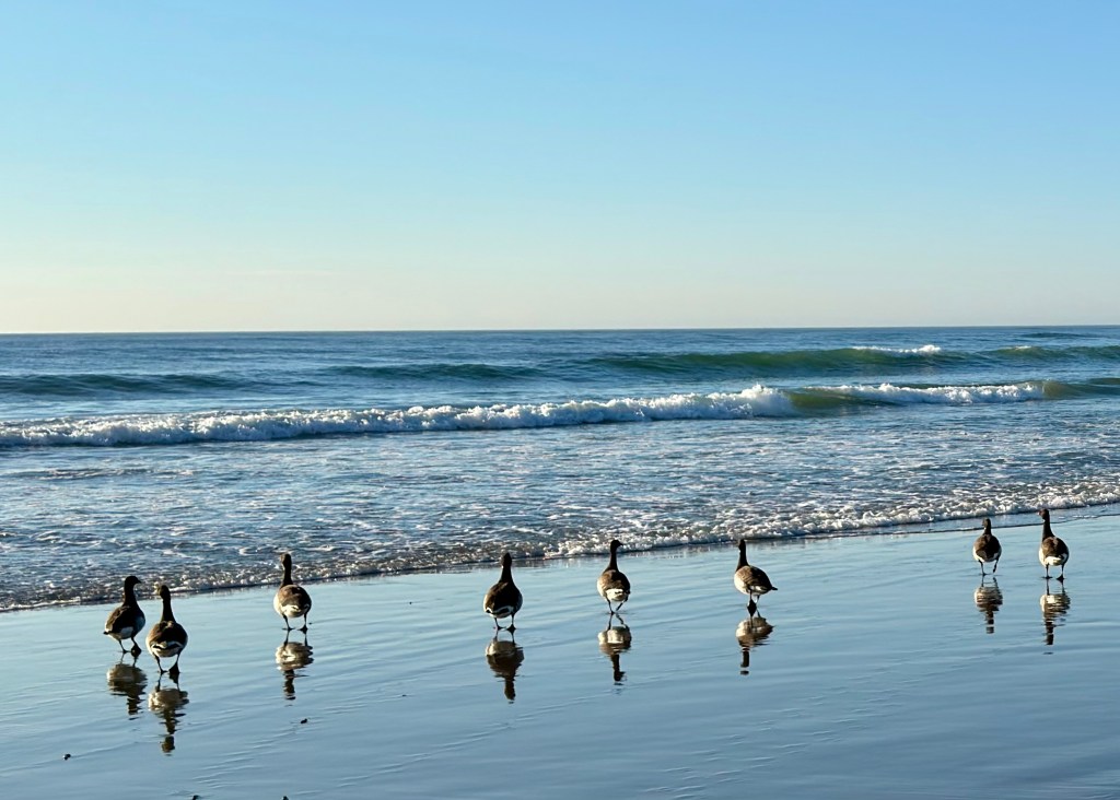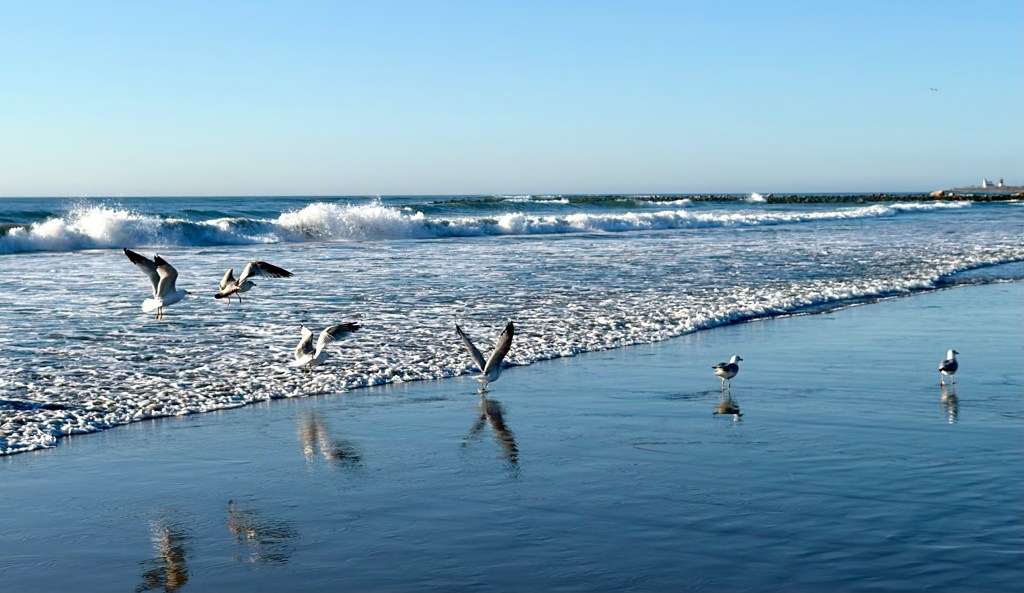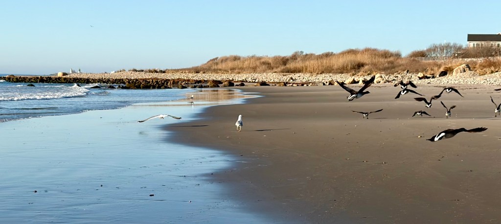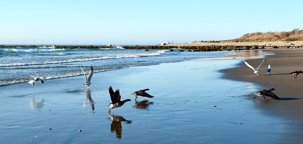 The early morning light was soft and beautiful. Everything was quiet. The waves crashed steadily, and the seagulls gathered at the water’s edge, looking like a row of little old men—until they took flight, transforming into graceful figures with outstretched wings.