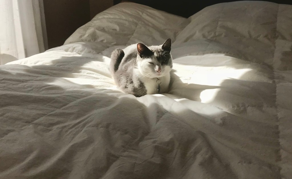 Something I’ve discovered through the evolution of this blog is how deeply I’m drawn to light – not just as a source, but as an attribute. I love how light and shadows work in contrast to soften a surface, make the ordinary glow with an ethereal shimmer, shift the texture of something familiar, or highlight details I might otherwise overlook. Sometimes, it’s simply the way light illuminates a cute little cat basking in a sunbeam…and makes me smile.