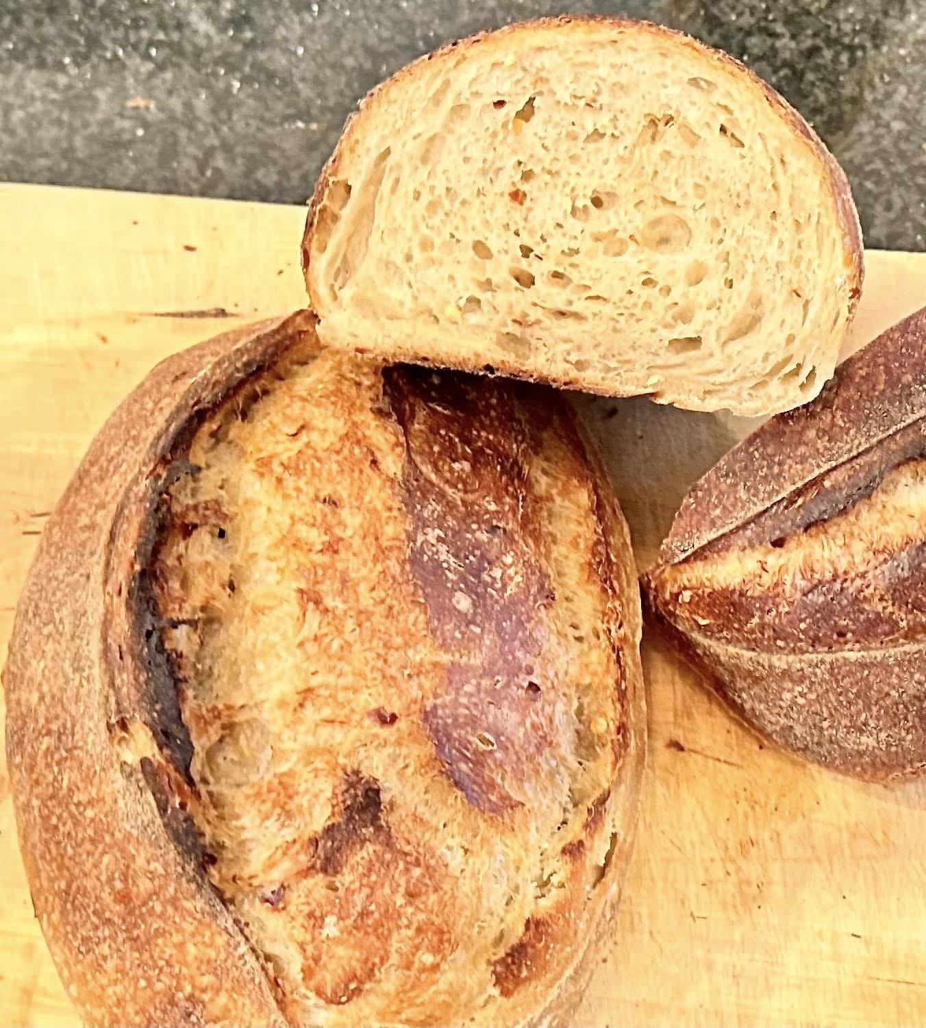 I began working with sourdough two years ago. I’ve always liked to cook and bake but something like sourdough offered more of a challenge – and a steep learning curve! For those who aren’t familiar, sourdough involves feeding and maintaining a little colony of wild yeast that you use to raise your dough instead of using the commercial yeast packets that you buy in the grocery store. Already having a lot of experience baking with commercial yeast, I thought sourdough would be an easy transition. It turned out to be a humbling experience! But with patience, trial and error and a bit of bakers intuition, I ended up with bakes to be proud of. This gallery is dedicated to my sourdough nerdiness.